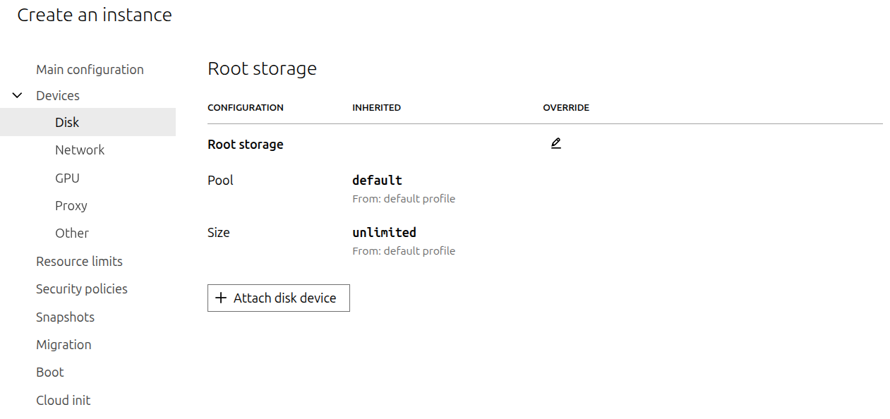 When you create an instance, LXD automatically creates a storage volume that is used as the root disk for the instance.