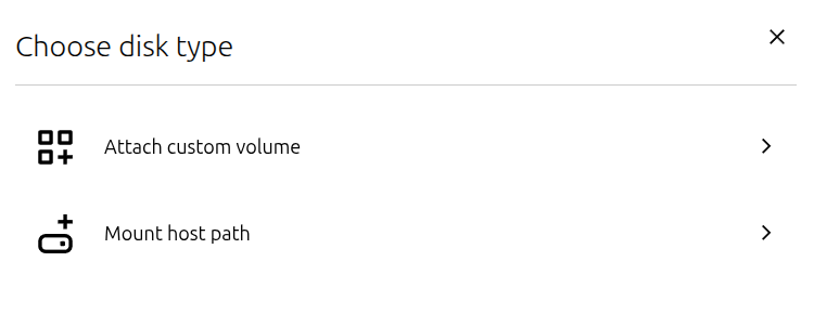 The resulting modal allows you to choose your disk type. Select Attach custom volume:
